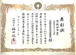 川崎市市制100周年記念表彰 市政功労賞受賞について