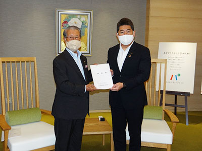 令和3年度予算編成にあたり、福田市長を訪問し、川崎市全町内会連合会として、川崎市に対して次のとおり要望活動を行いました。 1 日時令和2年9月29日(火) 午前11時〜11時30分 2 場所川崎市役所 第3庁舎 市長応接室 3 出席者